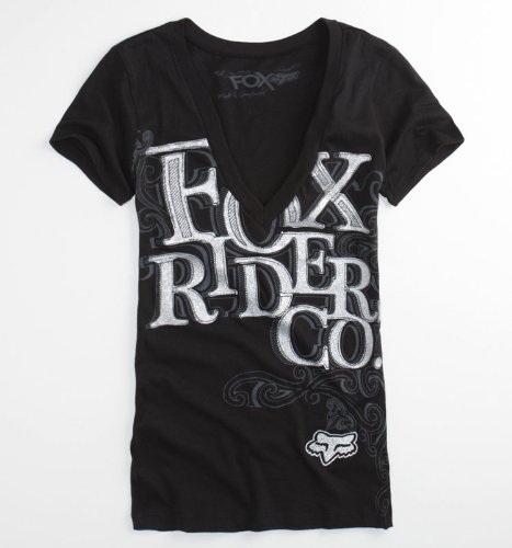 Theyll be jocking your style when you walk in wearing this Fox v-neck tee. Brand name and logo featured in silver glitter. Brand logo featured on back.