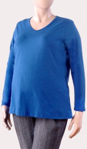 PLUS SIZE LONG SLEEVE V NECK COTTON / SPANDEX JERSEY KNIT MATERNITY T SHIRT