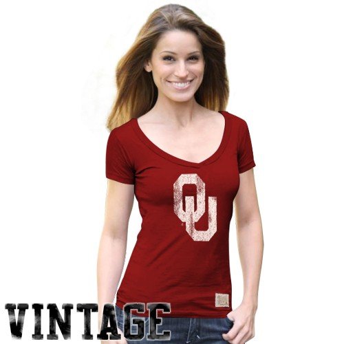 Cheap Oklahoma Sooners Ladies Crimson Distressed Arch V-neck Vintage Premium T-shirt Review