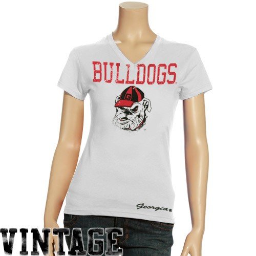 Cheap Georgia Bulldogs Ladies White Clipper Vintage V-Neck T-shirt Review