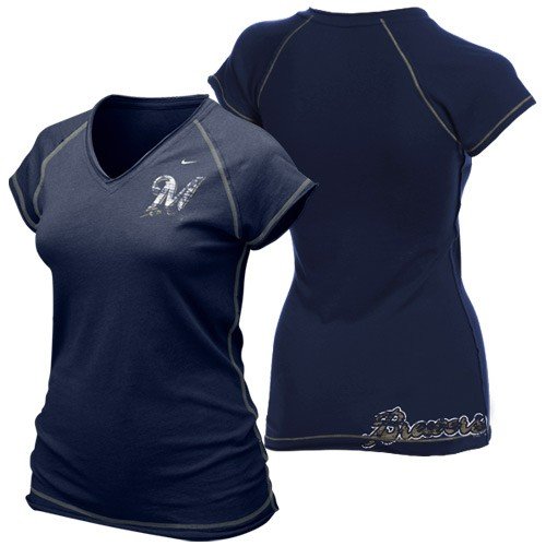 Cheap Nike Milwaukee Brewers Ladies Navy Blue Bases Loaded V-Neck T-shirt Review