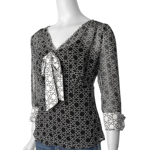 Cheap Piano Brand Link Print Ladies V-neck Sheer Blouse Review