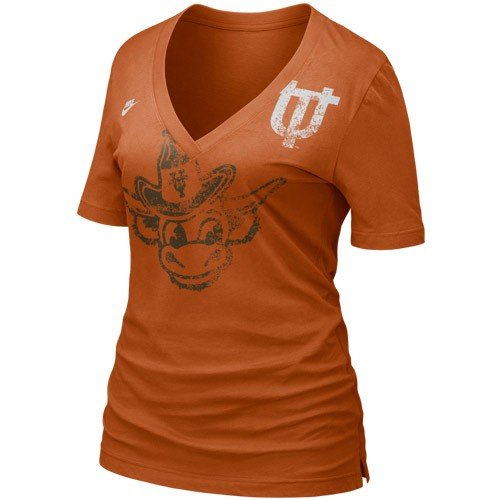 Ladies, take the plunge into terrific Texas style with this Deep V-Neck premium tee from Nike featuring 1/4-length sleeves, a distressed university wordmark and a tonal mascot across the chest!